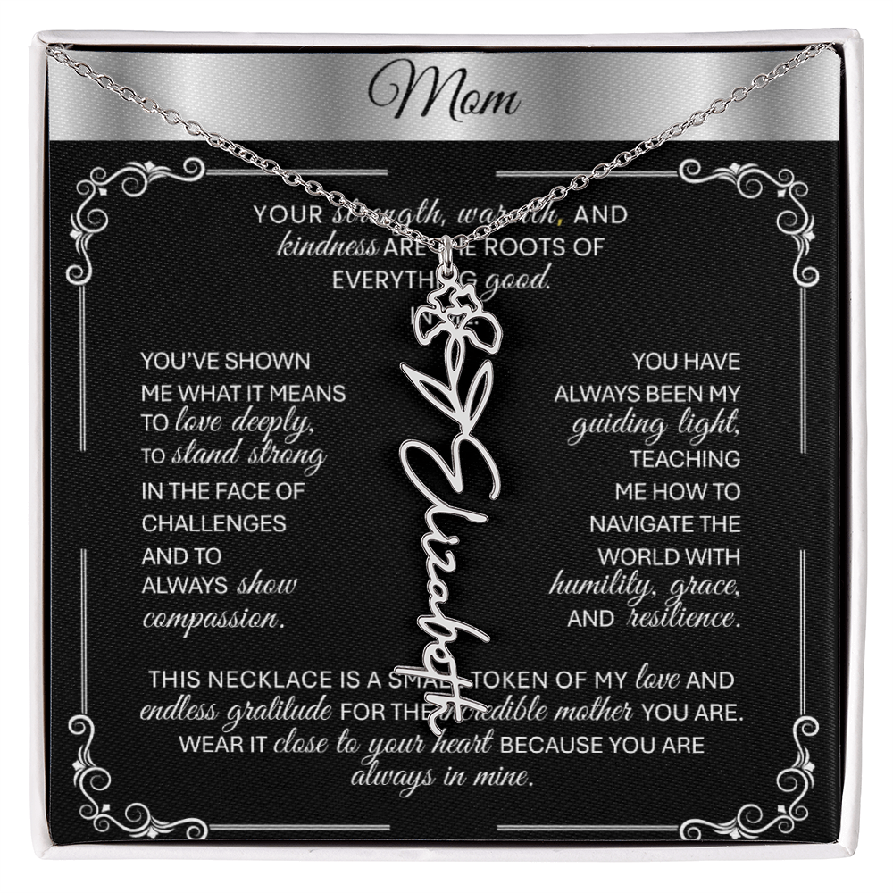 Elegant ✨ SILVER ✨ Birth Flower Name Necklace for Moms - Heartfelt Gift